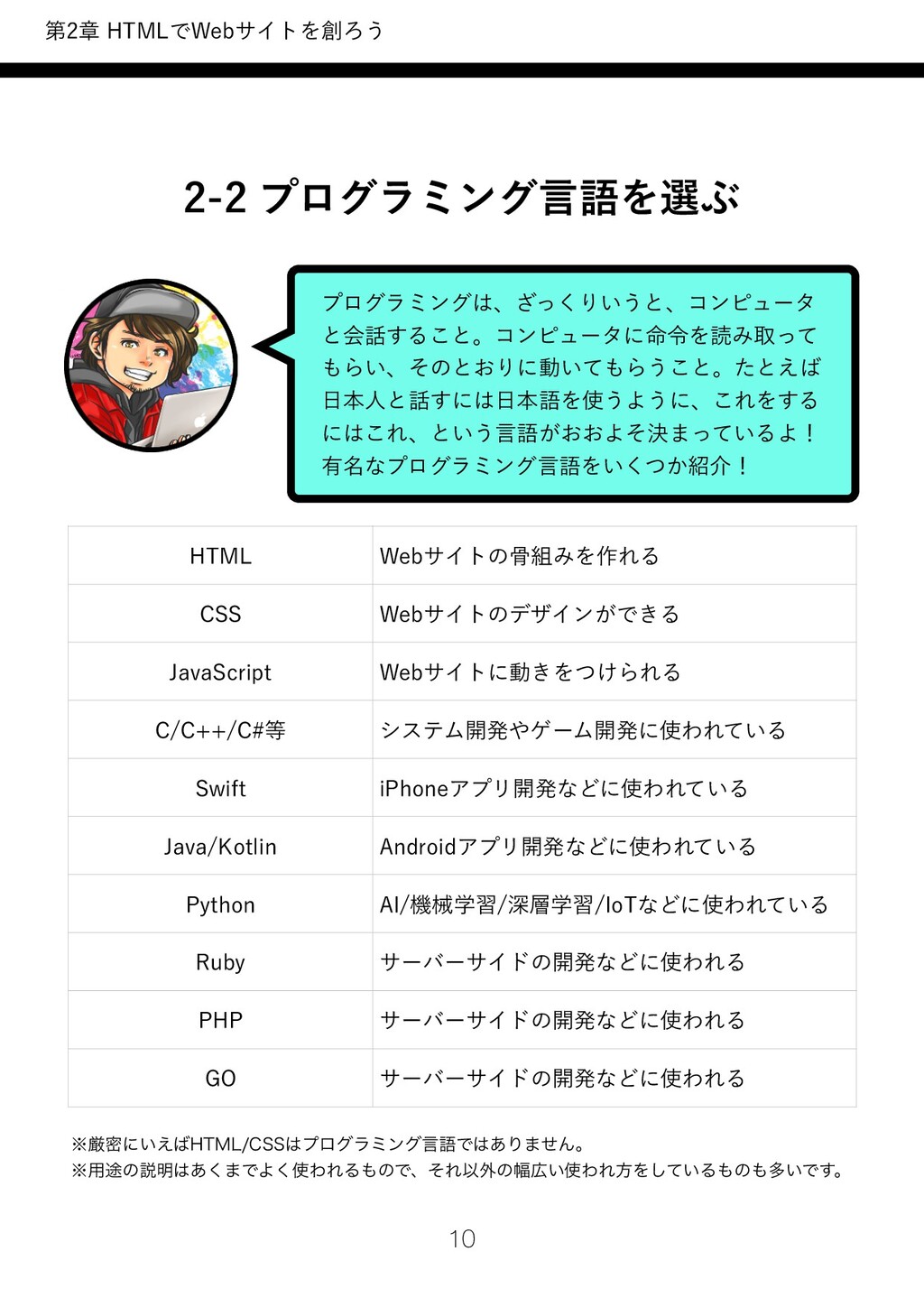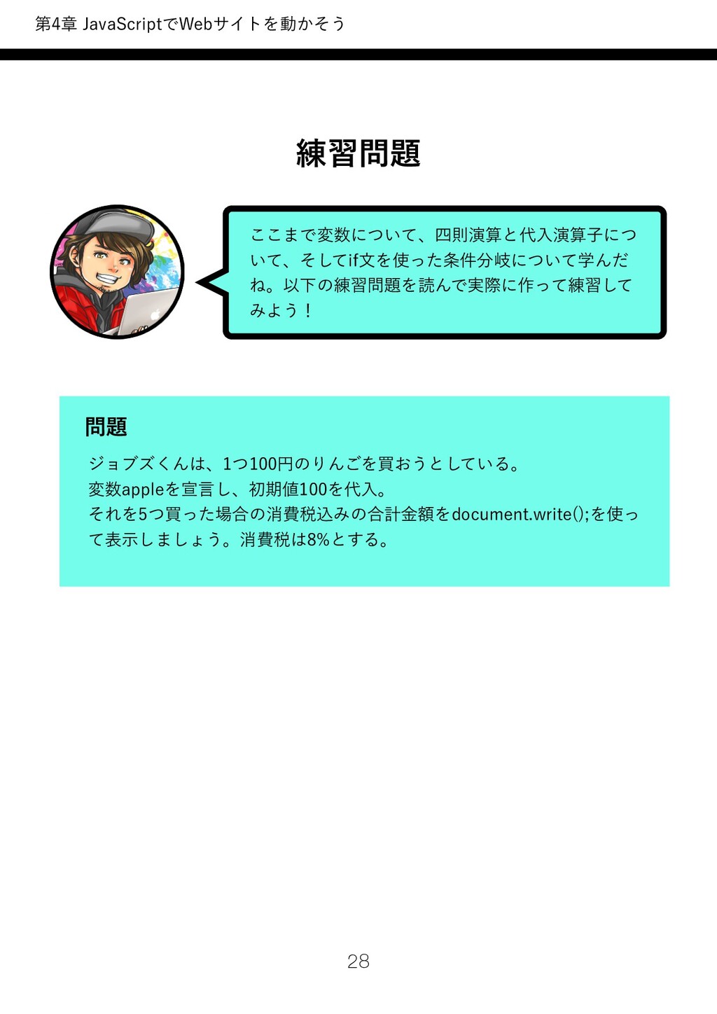 Βॻ͍͍ͯ͘ϓϩάϥϛϯάݴޠͰ͢ɻ͔ΜͨΜͳจࣈ͚ͩΛѻͬͯ ͍Δ͏ͪؾʹ͠·ͤΜ͕ɺʮϢʔβʔʯʮߘʯʮఢʯʮϥϯΩϯ άʯͳͲɺෳࡶͳใͷ͔ͨ·ΓΛѻ͏Α͏ʹͳΔͱঃʑʹҙࣝ͢ΔΑ͏ʹ ͳΔͰ͠ΐ͏ɻ ᶅجຊతʹ্͔Βॱʹಡ·ΕΔ ᶆॳ৺ऀ͋Δ͋Δ ᶃجຊతʹΦϒδΣΫτࢦܕͱݺΕΔλΠϓͷݴޠ ᶄ)5.-ʹॻ͘߹ɺTDSJQUλάͷதʹॻ͘ +BWB4DSJQUΛॻ͍ͯࢼͯ͠ΈͯɺΘ͔Γ݁͘͢ՌΛදࣔͤ͞Δʹɺ)5.- ͱΈ߹ΘͤΔͷ͕࠷खܰͰ͢ɻ)5.-ͷCPEZλάͷதʹTDSJQUλά Λॻ͖ɺͦͷλάͷதʹ+BWB4DSJQUΛॻ͘ͱɺϖʔδ͕දࣔ͞Εͨͱ͖ʹͦ ͷίʔυ͕࣮ߦ͞Ε·͢ɻͷͪͷͪɺIFBEλάʹॻ͍ͨΓɺ֎෦KTϑΝ Πϧͱͯͤͨ͠͞Γ͠·͕͢ɺ࠷͔ΜͨΜʹࢼ͢ʹɺTDSJQUλά Λ͏ͱΑ͍Ͱ͠ΐ͏ɻ +BWB4DSJQUʹݶΒͣɺଟ͘ͷϓϩάϥϛϯάݴޠجຊతʹ্͔Βॱʹ࣮ߦ͞ Ε͍͖ͯ·͢ɻ ॳ৺ऀͷ͏ͪɺਖ਼͘͠ॻ͍ͨͣͳͷʹ͏·͍͔͘ͳ͍ͱ͖ɺجຊతʹ ʮεϖϧϛεʯʮηϛίϩϯΕʯʮه߸͕શ֯ʹͳ͍ͬͯΔʯʮεϖʔε ͕Γͳ͍༨ʯʮΧοί͕ଟ͍গͳ͍ʯ͕΄ͱΜͲͰ͢ɻΑͪ͐ͬ͘͘ ͠·͠ΐ͏ɻ