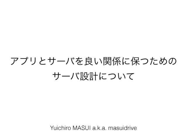 ΞϓϦͱαʔόΛྑ͍ؔʹอͭͨΊͷ αʔόઃܭʹ͍ͭͯ Yuichiro MASUI a.k.a. masuidrive