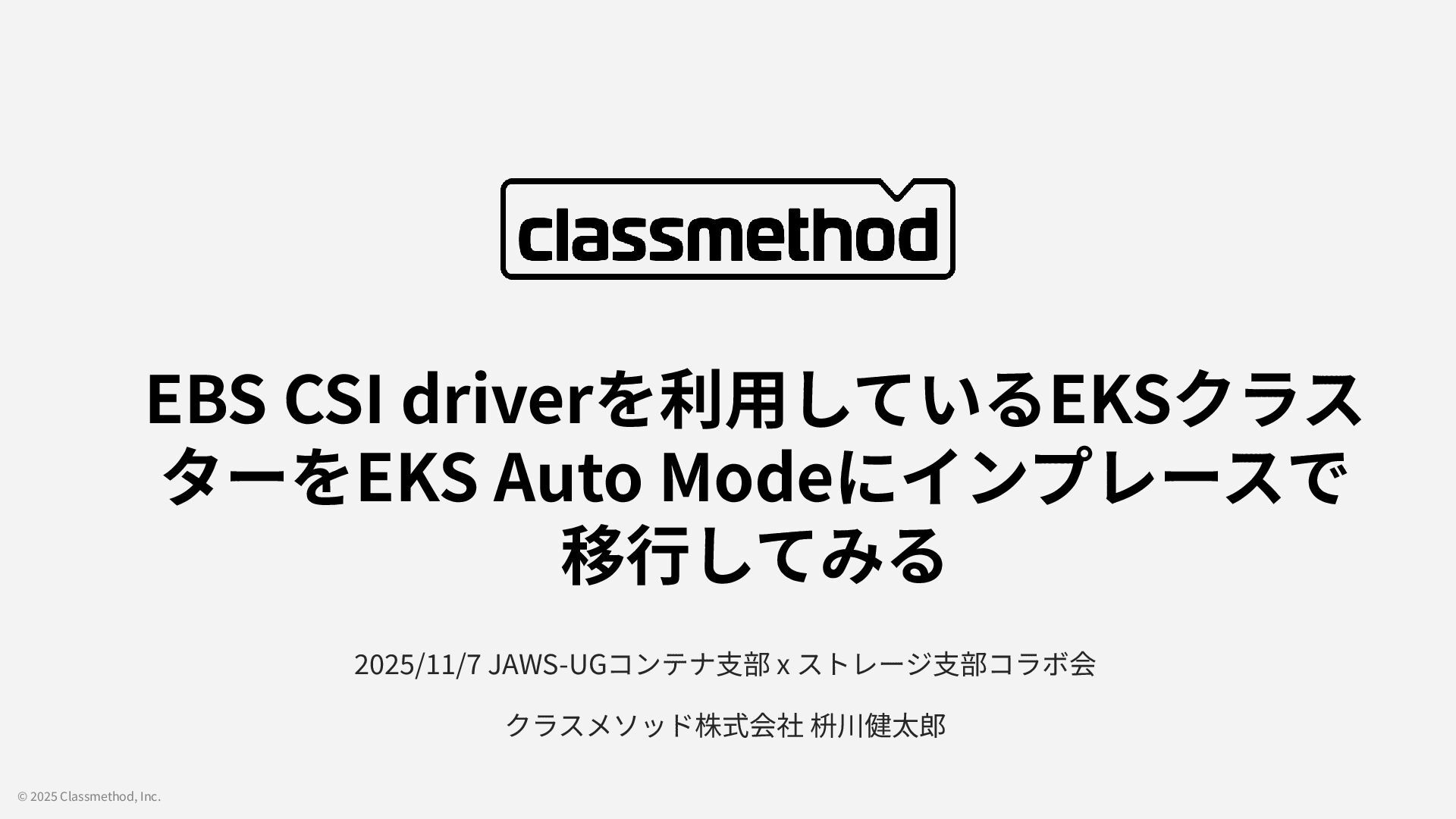 © 2025 Classmethod, Inc. 2025/11/7 JAWS-UGコンテナ⽀部 x ストレージ⽀部コラボ会 クラスメソッド株式会社 枡川健太郎