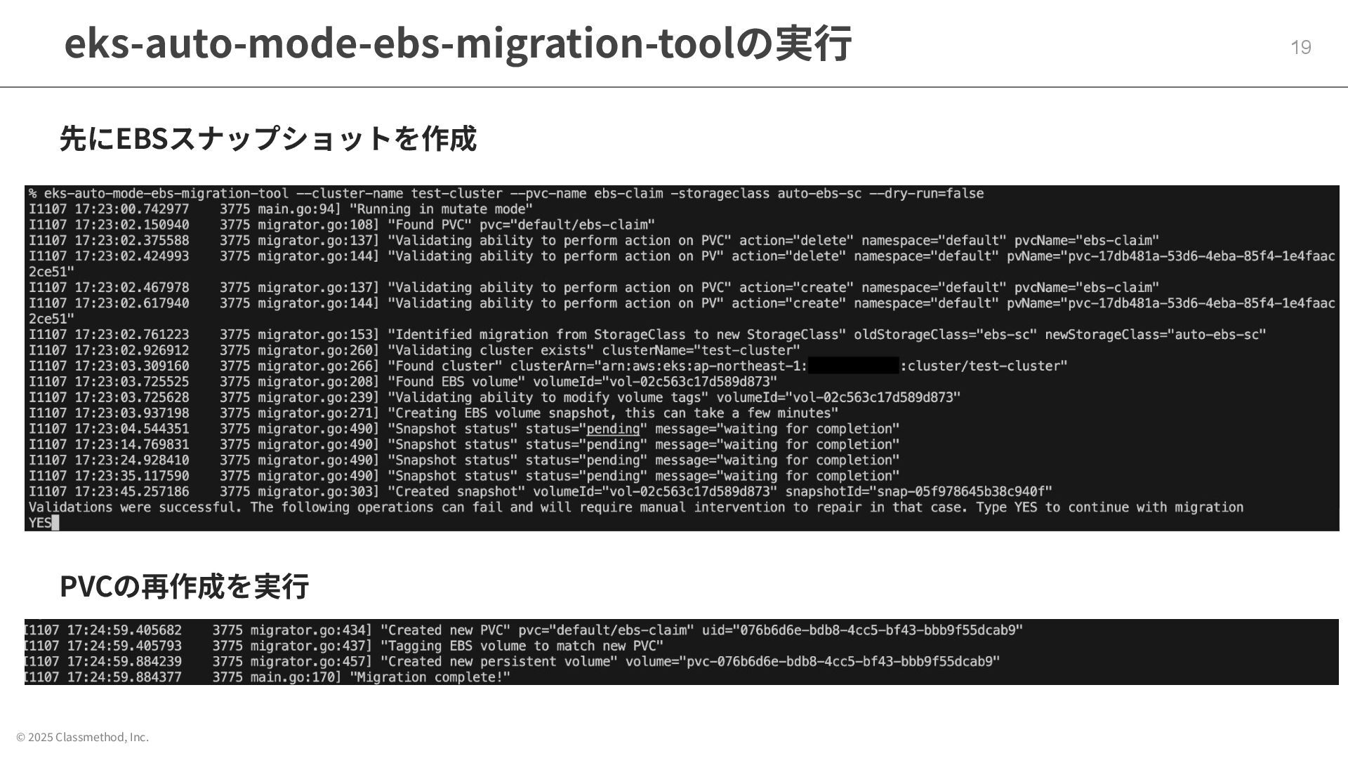 © 2025 Classmethod, Inc. eks-auto-mode-ebs-migration-toolの実⾏ 19 先にEBSスナップショットを作成 PVCの再作成を実⾏