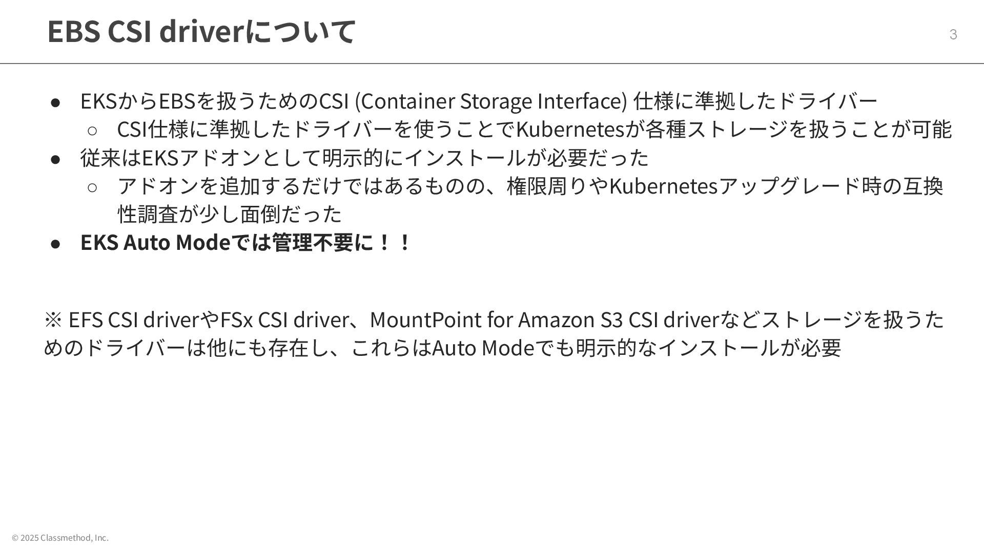 © 2025 Classmethod, Inc. EBS CSI driverについて 3 • EKSからEBSを扱うためのCSI