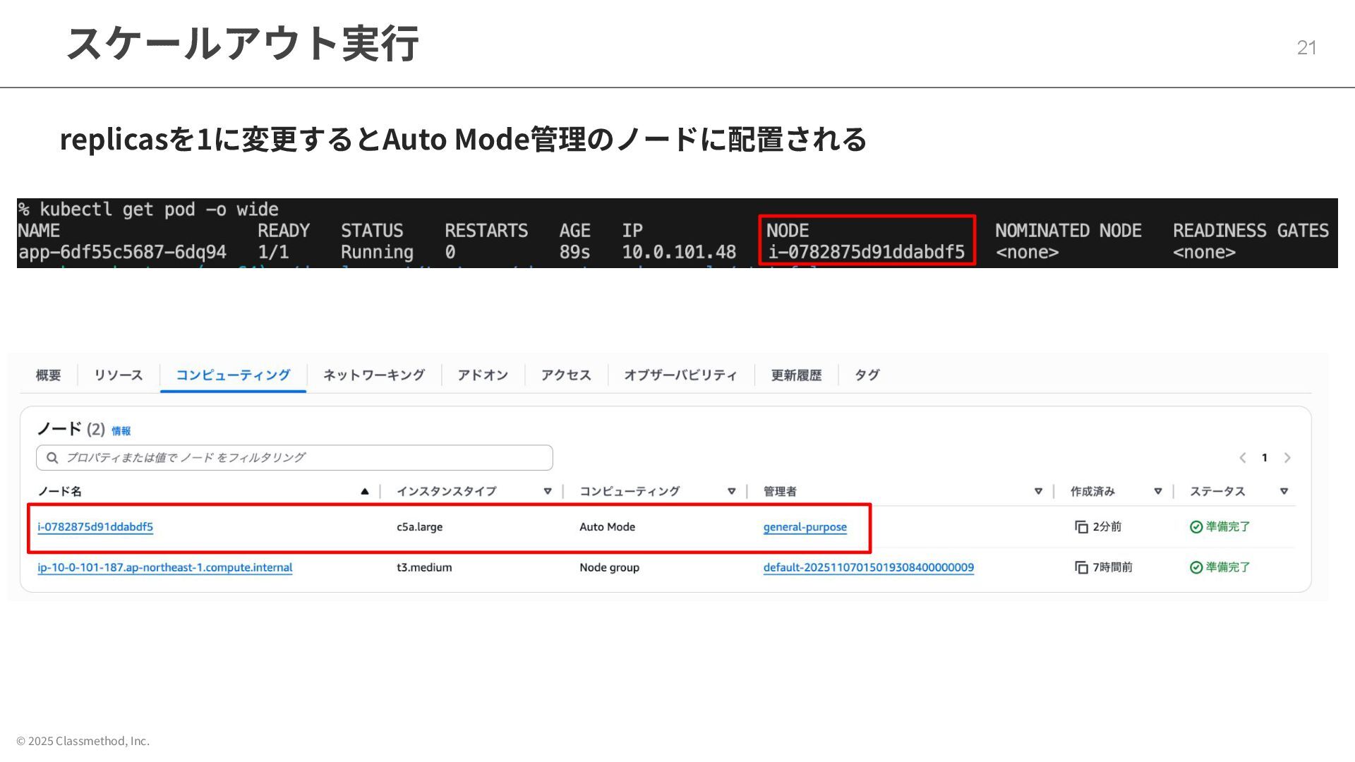 © 2025 Classmethod, Inc. スケールアウト実⾏ 21 replicasを1に変更するとAuto Mode管理のノードに配置される