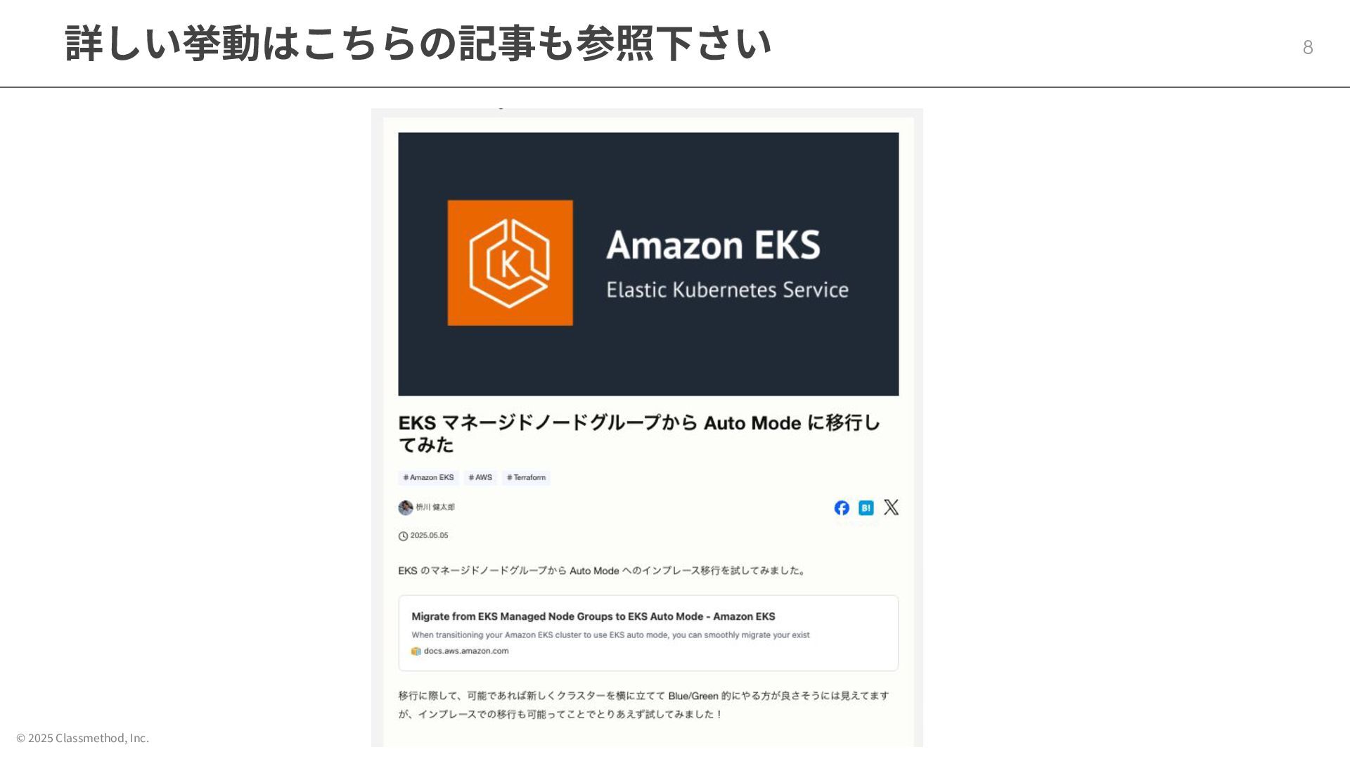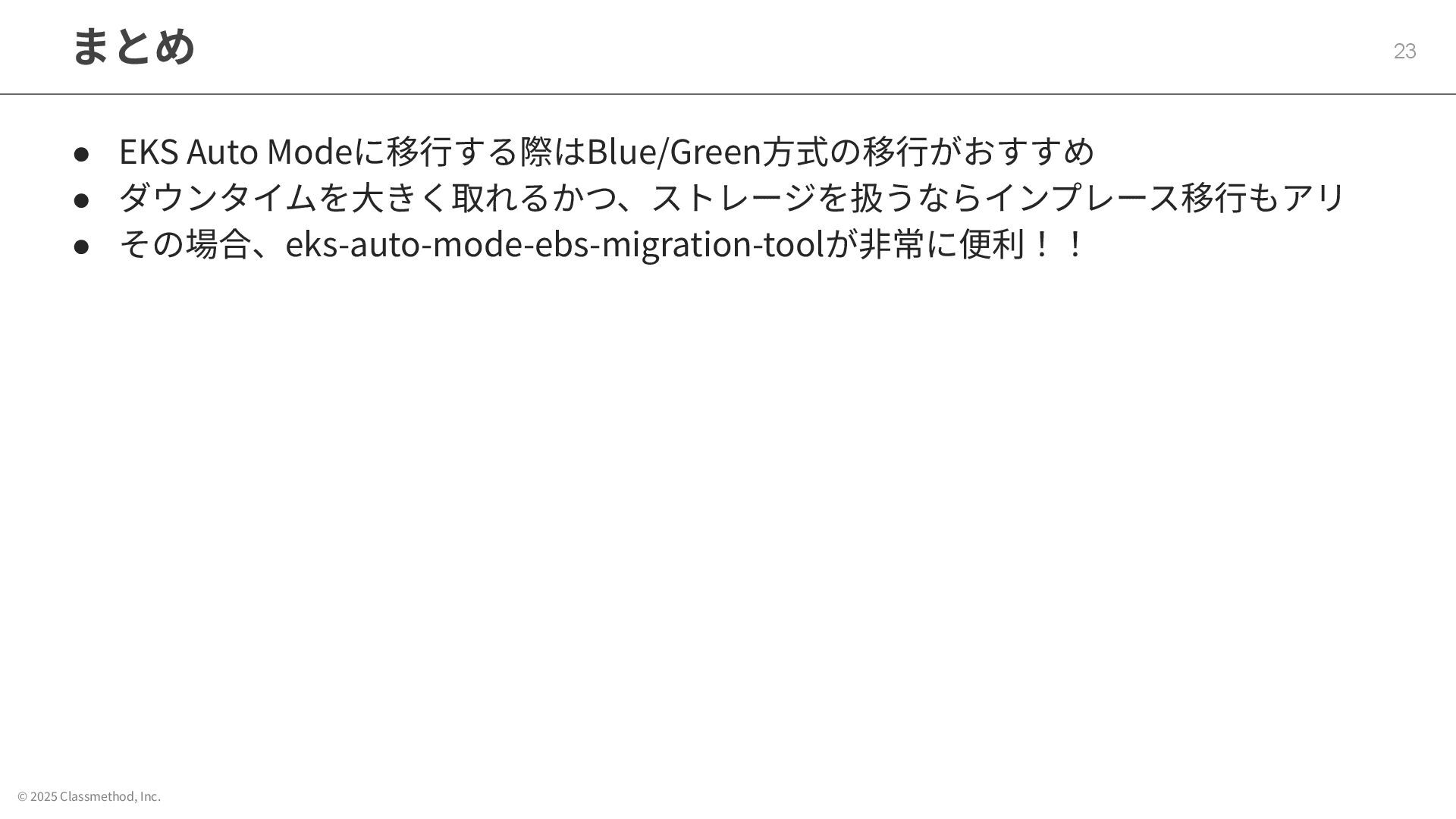 © 2025 Classmethod, Inc. まとめ 23 • EKS Auto Modeに移⾏する際はBlue/Green⽅式の移⾏がおすすめ