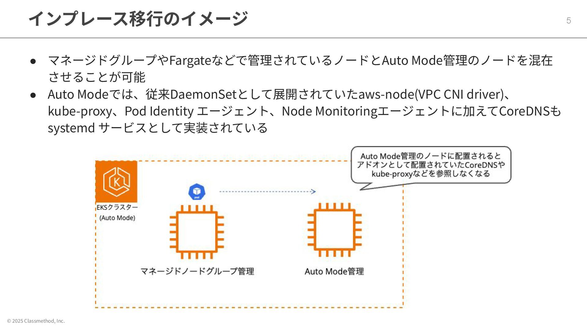 © 2025 Classmethod, Inc. インプレース移⾏のイメージ 5 • マネージドグループやFargateなどで管理されているノードとAuto Mode管理のノードを混在 させることが可能