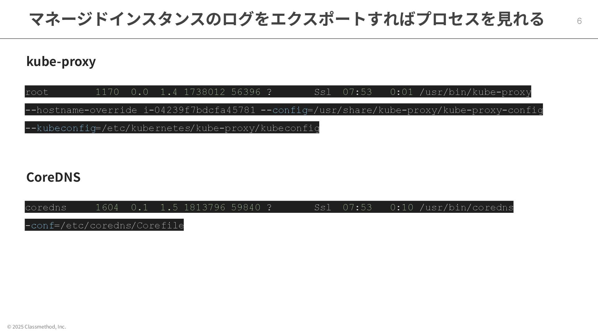 © 2025 Classmethod, Inc. マネージドインスタンスのログをエクスポートすればプロセスを⾒れる 6 kube-proxy root 1170 0.0