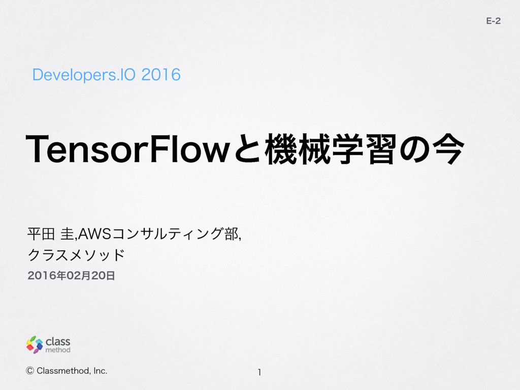 %FWFMPQFST*0 & ฏాܓ "84ίϯαϧςΟϯά෦ Ϋϥεϝιου ⡥$MBTTNFUIPE *OD ݄ 5FOTPS'MPXͱػցֶशͷࠓ