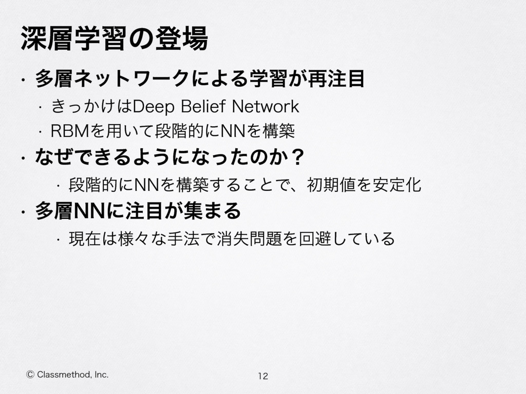 ⡥$MBTTNFUIPE *OD ਂֶशͷొ w ଟωοτϫʔΫʹΑΔֶश͕࠶ w ͖͔͚ͬ%FFQ#FMJFG/FUXPSL w 3#.Λ༻͍ͯஈ֊తʹ//Λߏங w