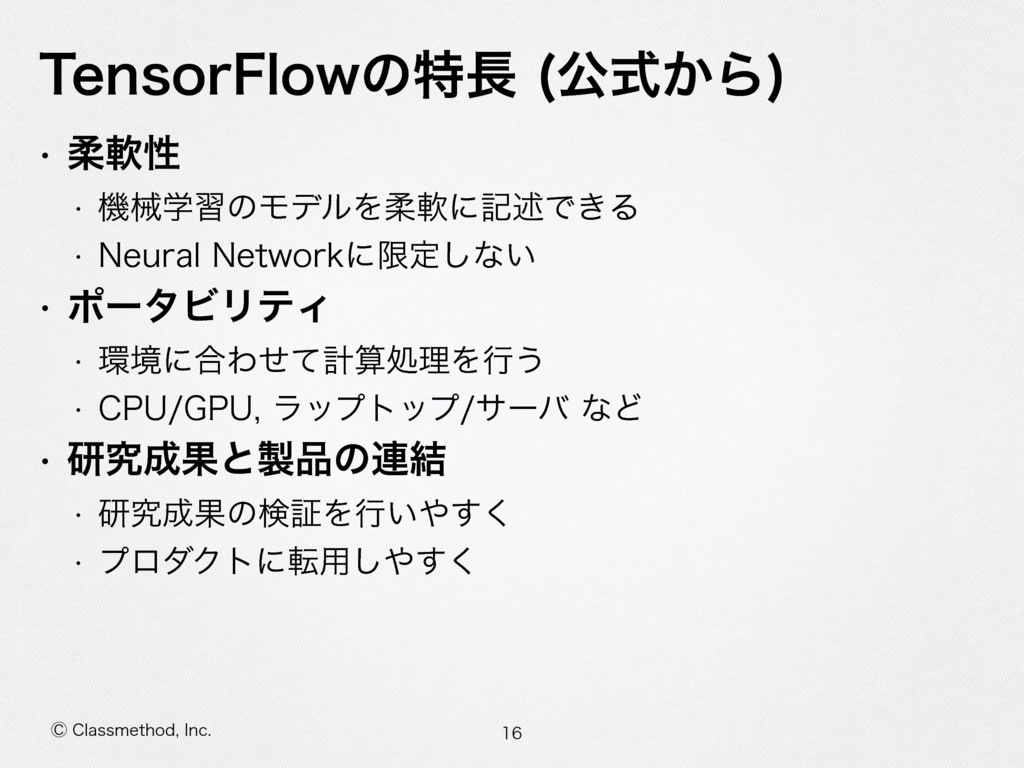 ⡥$MBTTNFUIPE *OD 5FOTPS'MPXʹ͍ͭͯ w (PPHMFͷػցֶशϥΠϒϥϦ w %FFQ-FBSOJOHҎ߱ w 1ZUIPO w