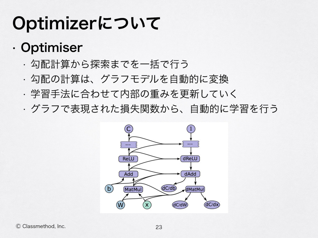 ⡥$MBTTNFUIPE *OD 0QUJNJ[FSʹ͍ͭͯ w 0QUJNJTFS w ޯܭࢉ͔Β୳ࡧ·ͰΛҰׅͰߦ͏ w ޯͷܭࢉɺάϥϑϞσϧΛࣗಈతʹม w