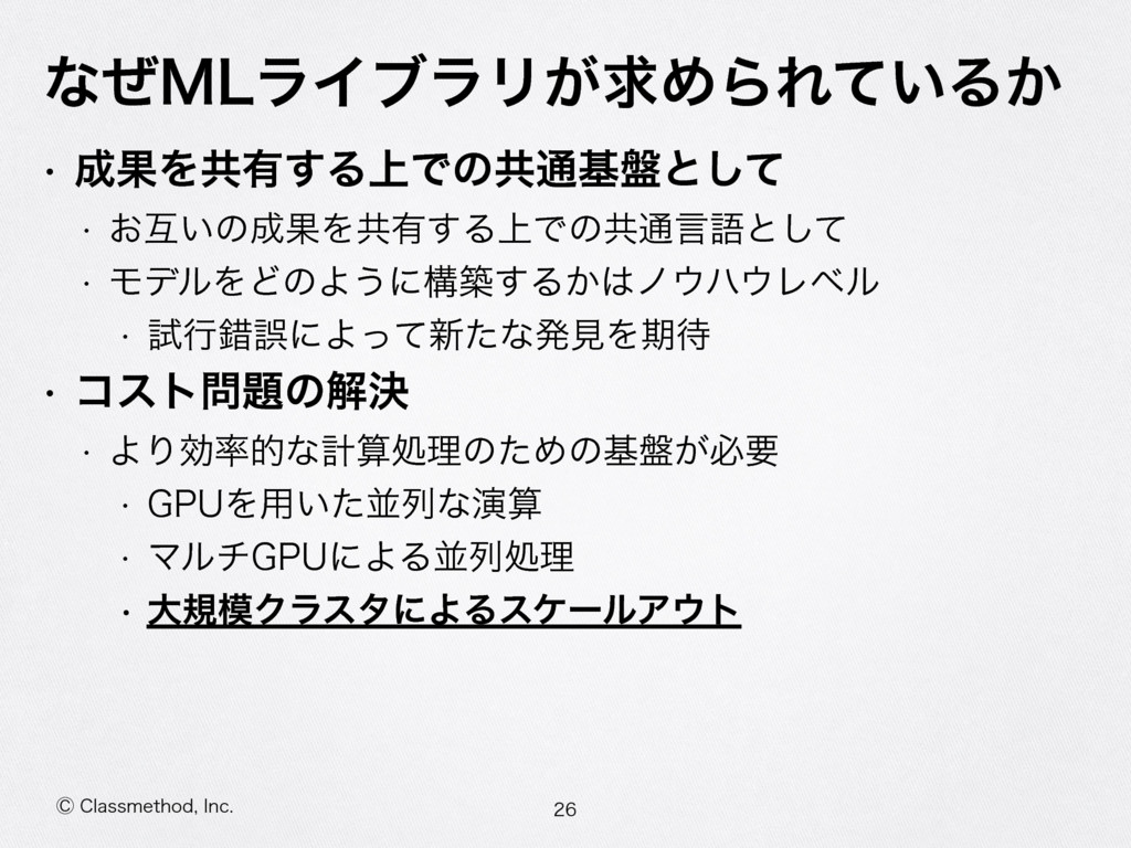 ⡥$MBTTNFUIPE *OD ͳͥ.-ϥΠϒϥϦ͕ٻΊΒΕ͍ͯΔ͔ w ՌΛڞ༗͢Δ্Ͱͷڞ௨ج൫ͱͯ͠ w ͓ޓ͍ͷՌΛڞ༗͢Δ্Ͱͷڞ௨ݴޠͱͯ͠ w ϞσϧΛͲͷΑ͏ʹߏங͢Δ͔ϊϋϨϕϧ w