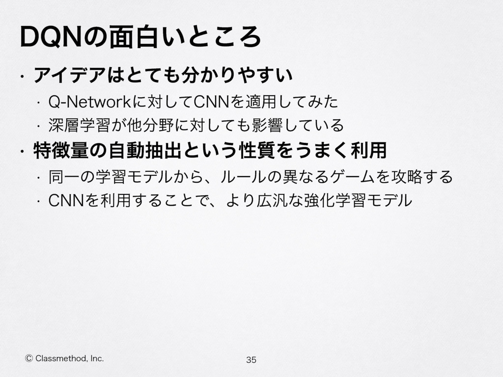 ⡥$MBTTNFUIPE *OD %2/ͷ໘ന͍ͱ͜Ζ w ΞΠσΞͱ͔ͯΓ͍͢ w 2/FUXPSLʹରͯ͠$//Λద༻ͯ͠Έͨ w ਂֶश͕ଞʹରͯ͠Өڹ͍ͯ͠Δ w