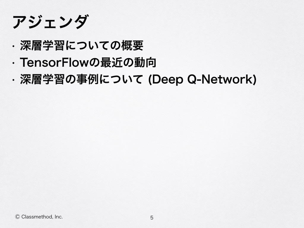 ⡥$MBTTNFUIPE *OD ΞδΣϯμ w ਂֶशʹ͍ͭͯͷ֓ཁ w 5FOTPS'MPXͷ࠷ۙͷಈ w ਂֶशͷࣄྫʹ͍ͭͯ %FFQ2/FUXPSL
