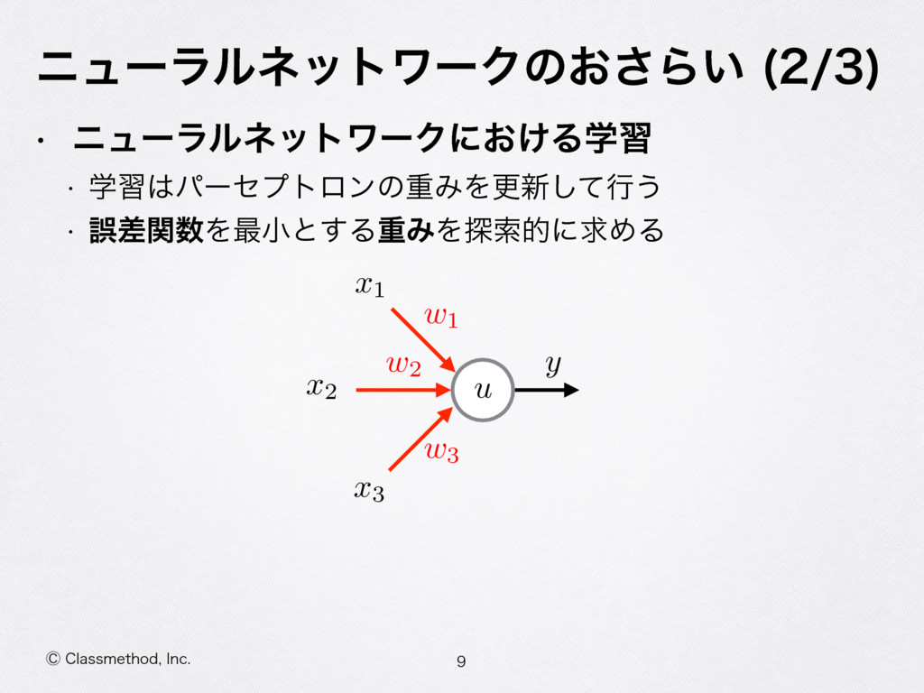 ⡥$MBTTNFUIPE *OD χϡʔϥϧωοτϫʔΫͷ͓͞Β͍ w χϡʔϥϧωοτϫʔΫʹ͓͚Δֶश w ֶशύʔηϓτϩϯͷॏΈΛߋ৽ͯ͠ߦ͏ w