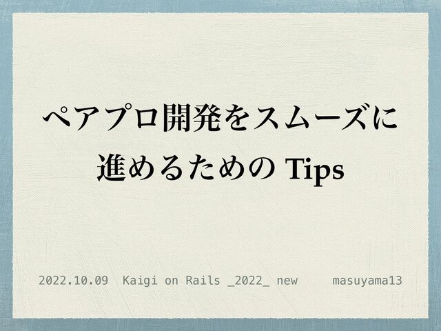 ϖΞϓϩ։ൃΛεϜʔζʹ ਐΊΔͨΊͷ Tips 2022.10.09 Kaigi on Rails _2022_ newɹɹɹmasuyama13