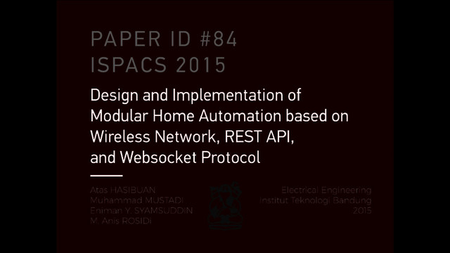 Design and Implementation of Modular Home Automation based on Wireless Network, REST API, and Websocket Protocol