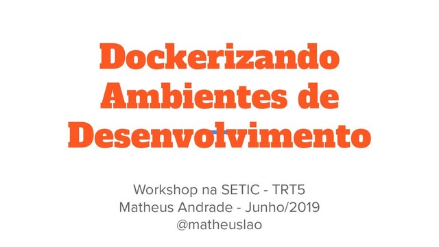 Dockerizando Ambientes de Desenvolvimento Workshop na SETIC - TRT5 Matheus