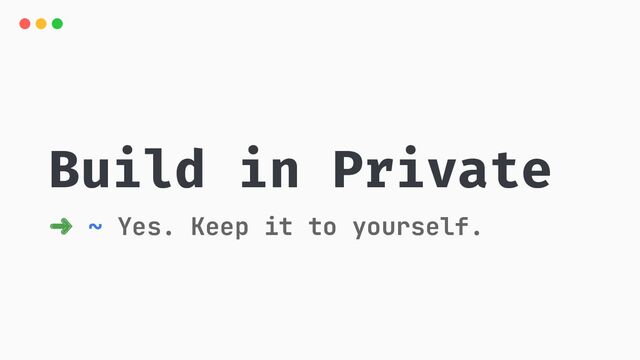 Build in Private ➜ ~ Yes. Keep it to yourself.