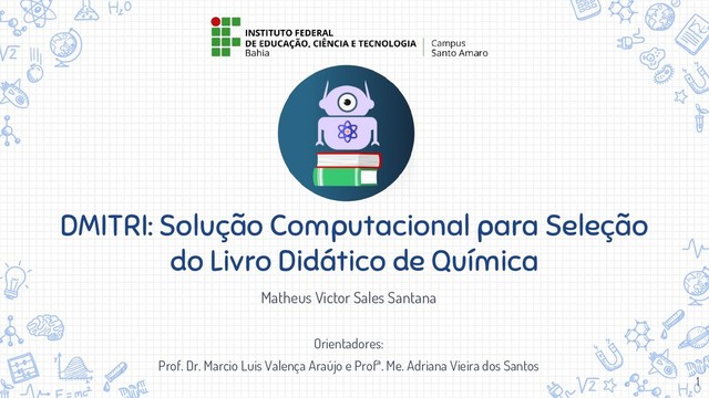 A aplicação DMITRI - Escolhendo o Livro Didático foi desenvolvida no IFBA - Campus Santo Amaro com o objetivo de auxiliar professores do Ensino Médio da rede pública na seleção do livro didático, dentro do Programa Nacional do Livro Didático (PNLD).