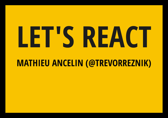 rend des vues et répond à des évènements le V de MVC ;-) pas de full stack Créé en 2011 et open source depuis Mai 2013 Facebook et applications tierces Appli. web instagram 20000 composants en production Beaucoup d'utilisateurs Netflix, Coursera, reddit, hipchat, yahoo