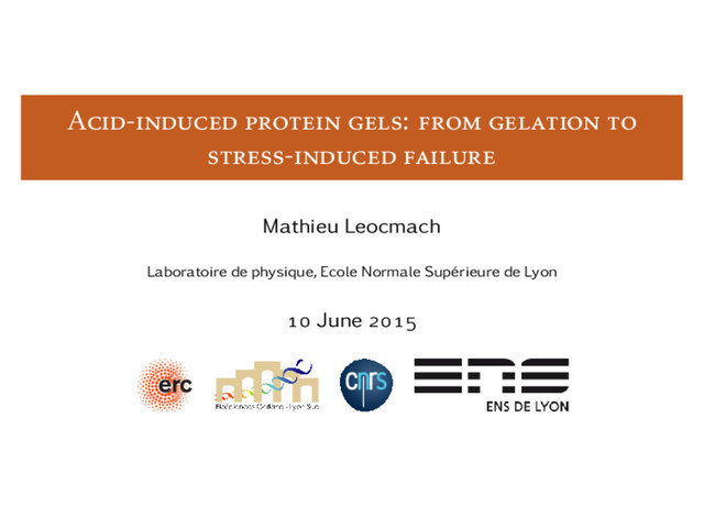 Talk given at Internation Symposium on Food Rheology and Structure, Zurich