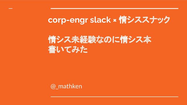 corp-engr slack × 情シススナック 情シス未経験なのに情シス本 書いてみた @_mathken