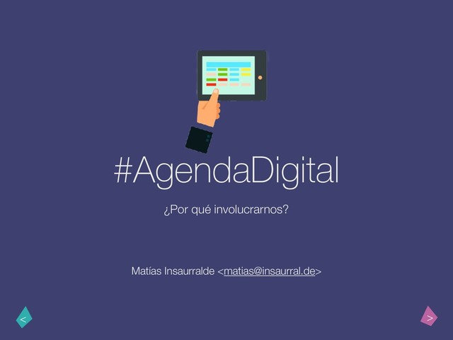 con tres objetivos principales: - Divulgar y centralizar la información que existe sobre el proyecto, ya que gran parte de la misma está dispersa por la web y en muchos casos aún no fue revelada. Actualmente tenemos más de 10 solicitudes info. pública pendientes. - Crear espacios para discutir los distintos componentes y productos del proyecto, involucrando gente de otras disciplinas. Resalto que el proyecto es amplio y cubre tópicos como educación y salud, no es algo sólo de informáticos. - Buscar la forma de que podamos participar activamente en la proyección e implementación de la #AgendaDigital. - Todo esto es auto-convocado, no hay afiliación política, tampoco existe rechazo a gremios, organizaciones, estudiantes, etc. que quieran colaborar.