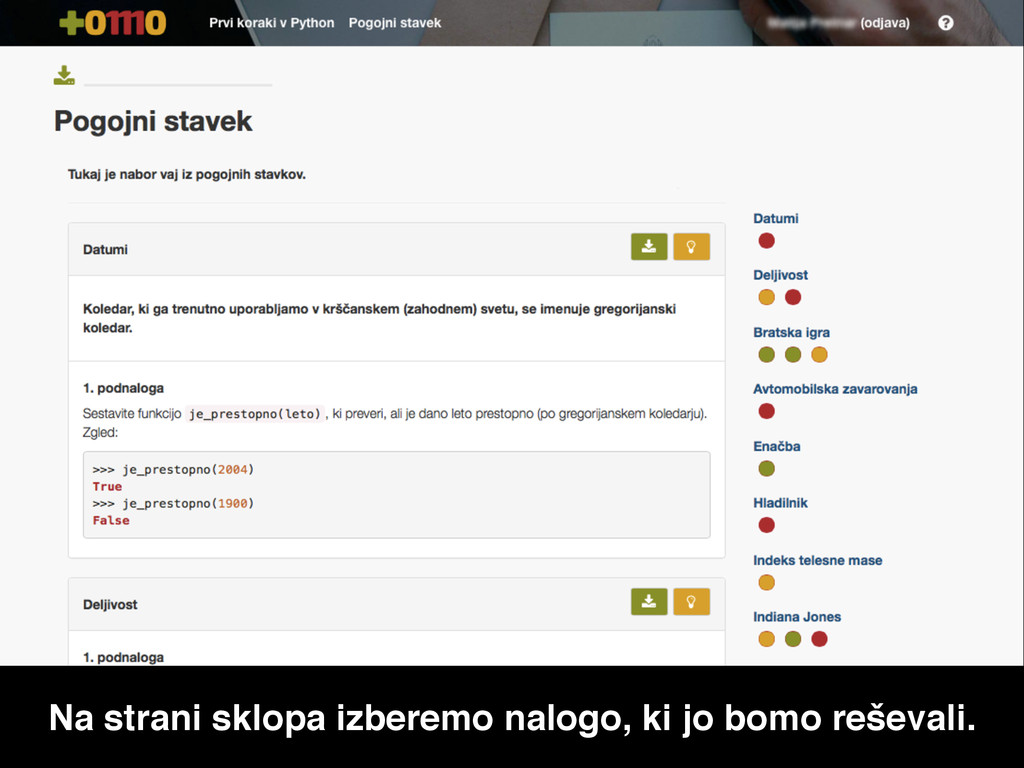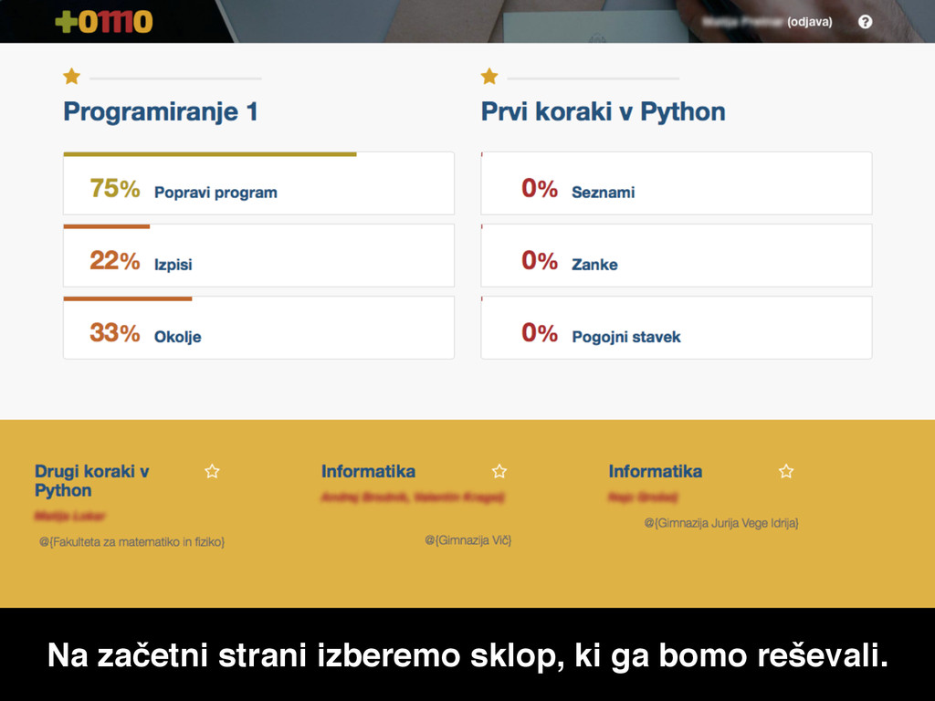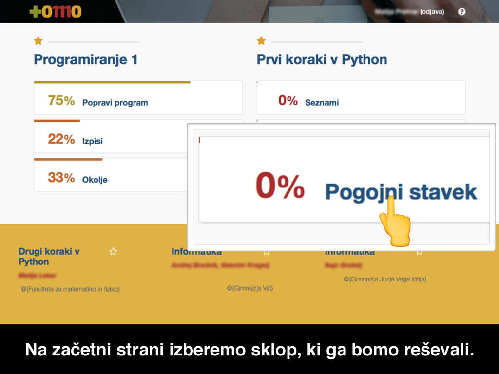 Na začetni strani izberemo sklop, ki ga bomo reševali.