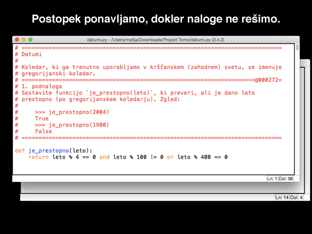 Postopek ponavljamo, dokler naloge ne rešimo.
