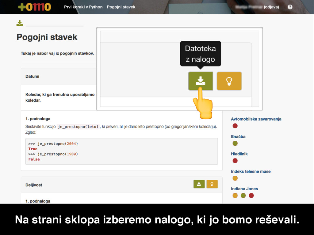 Na strani sklopa izberemo nalogo, ki jo bomo reševali.
