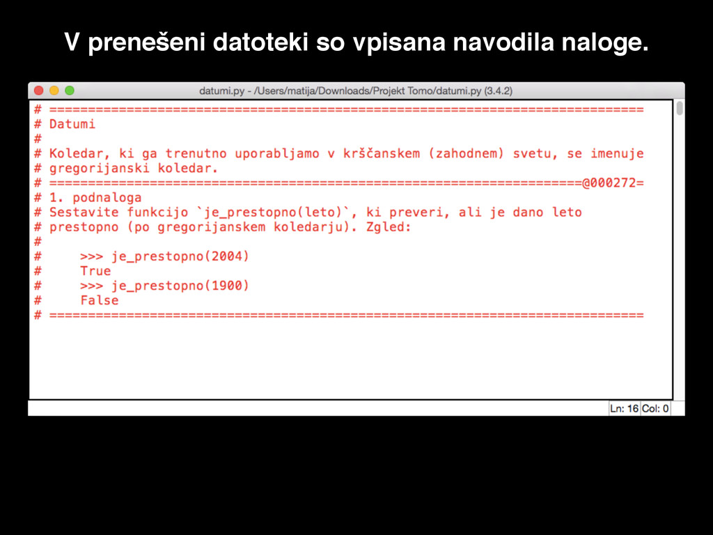 V prenešeni datoteki so vpisana navodila naloge.