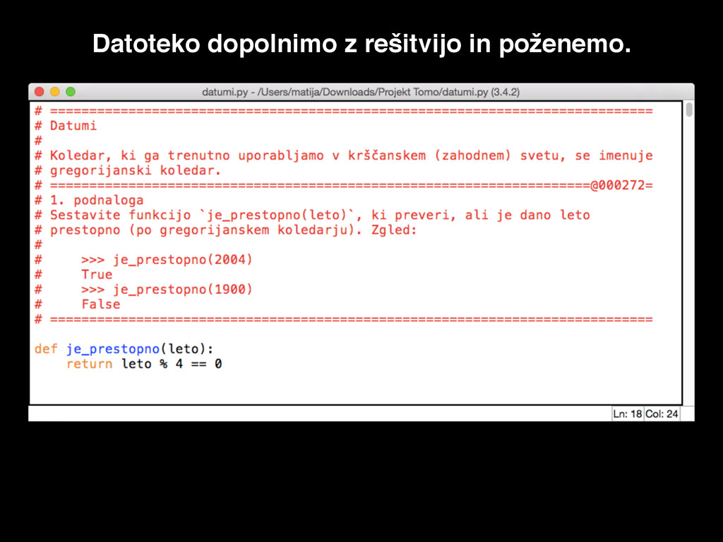 Datoteko dopolnimo z rešitvijo in poženemo.