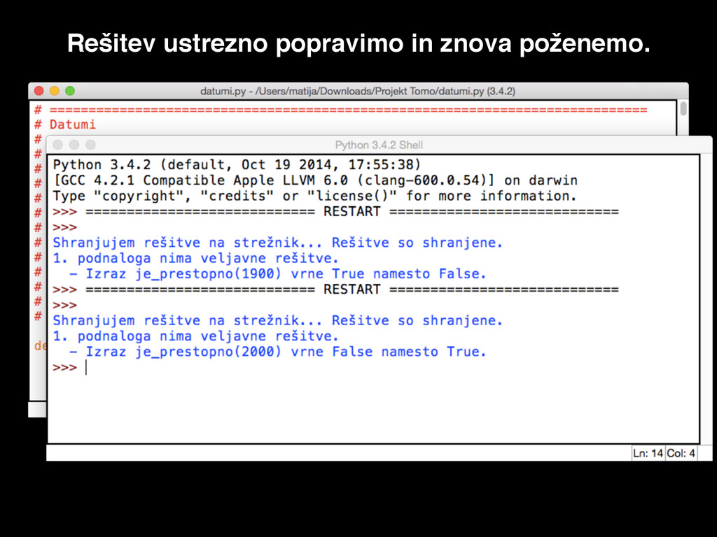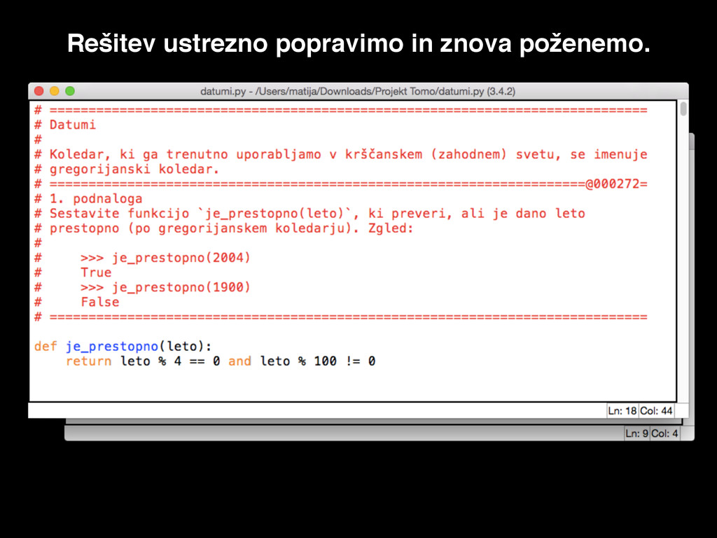 Rešitev ustrezno popravimo in znova poženemo.