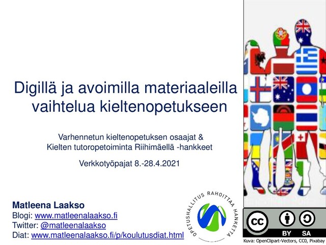 Kokoelma kieltenopettajien koulutusten materiaaleista liittyen erityisesti verkon hyödyntämiseen kieltenopetuksessa. Diasarja päivittyi useamman kerran huhtikuussa 2021. Diasarjan linkkejä ja muita lähteitä: https://padlet.com/matlaakso/kieltenopetus