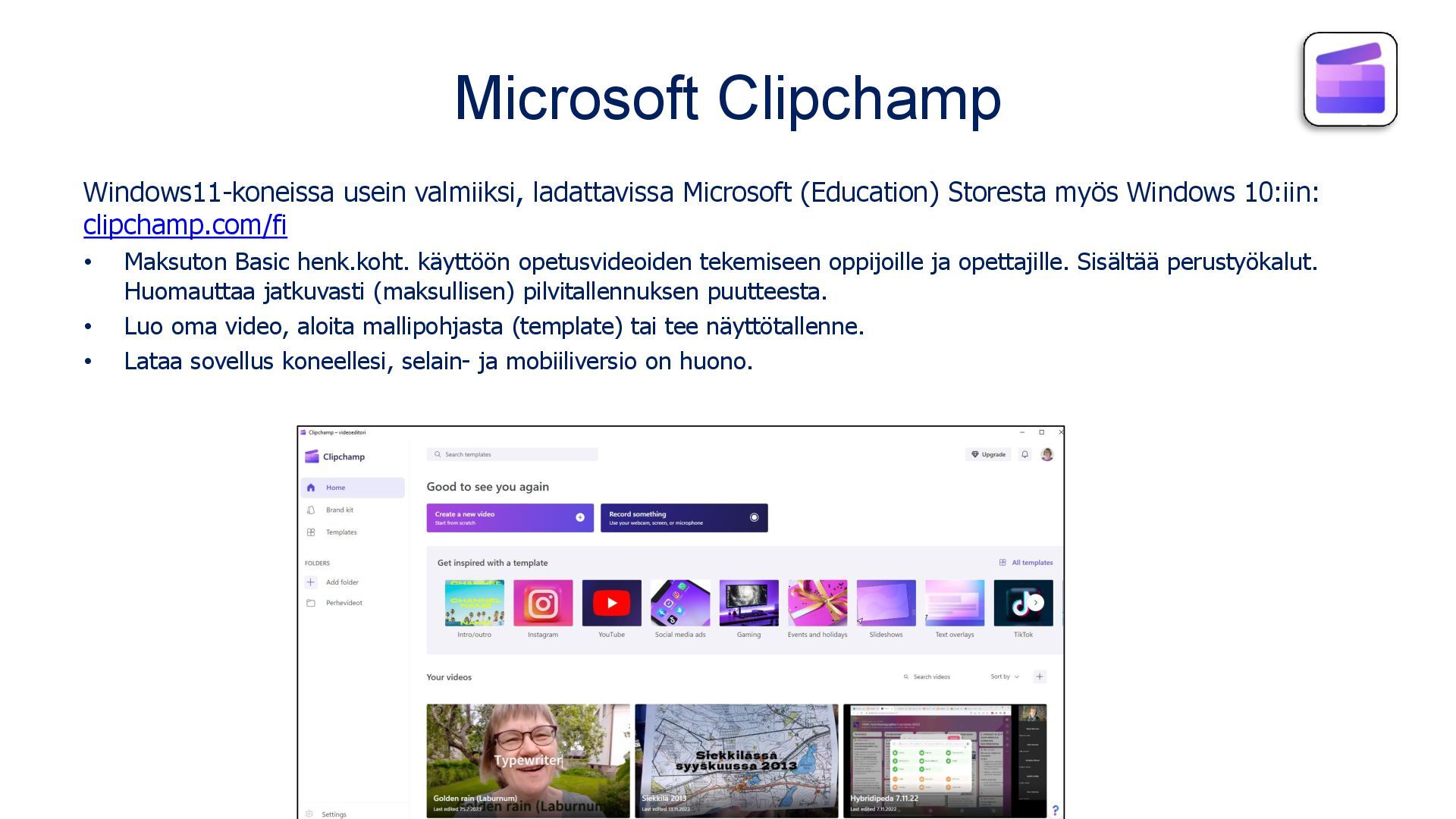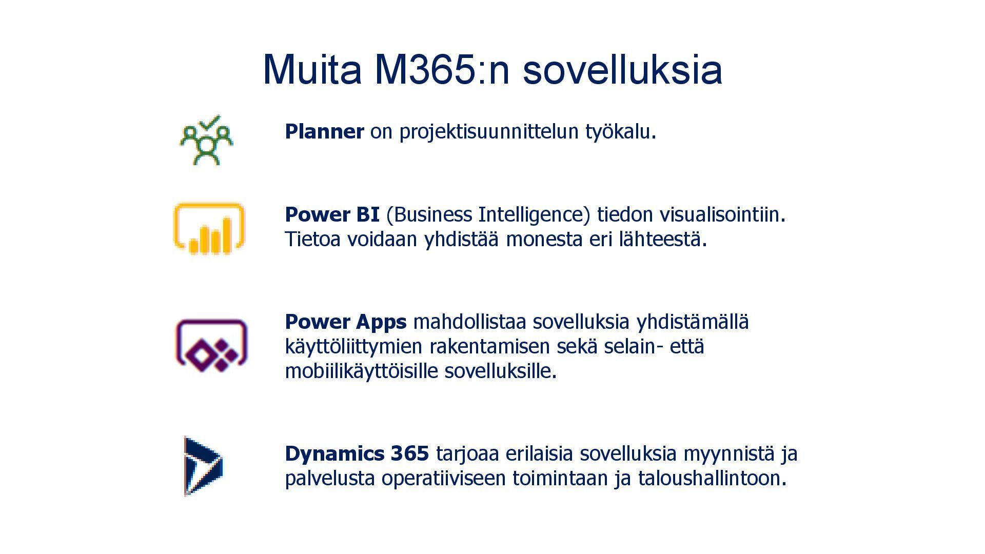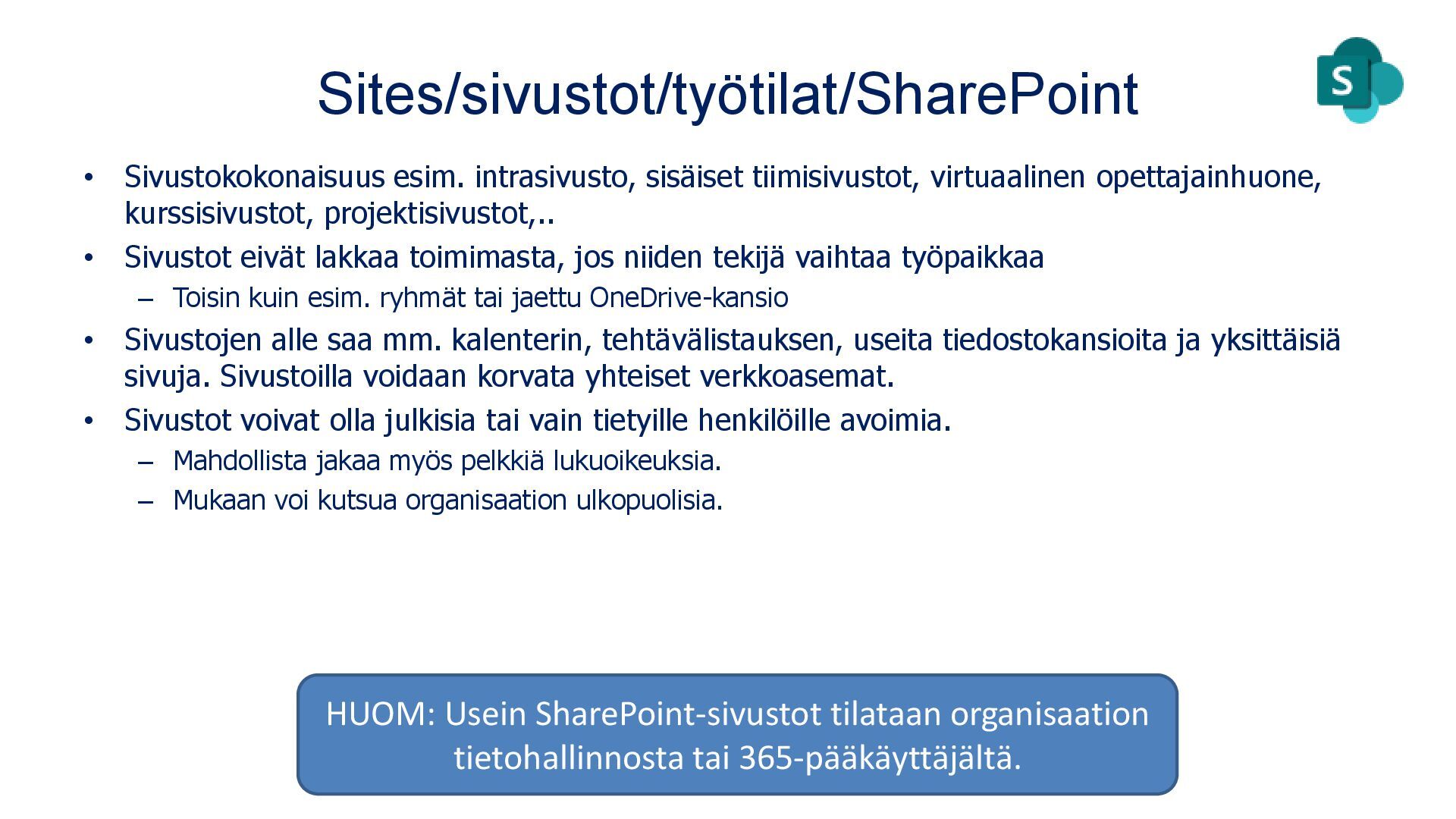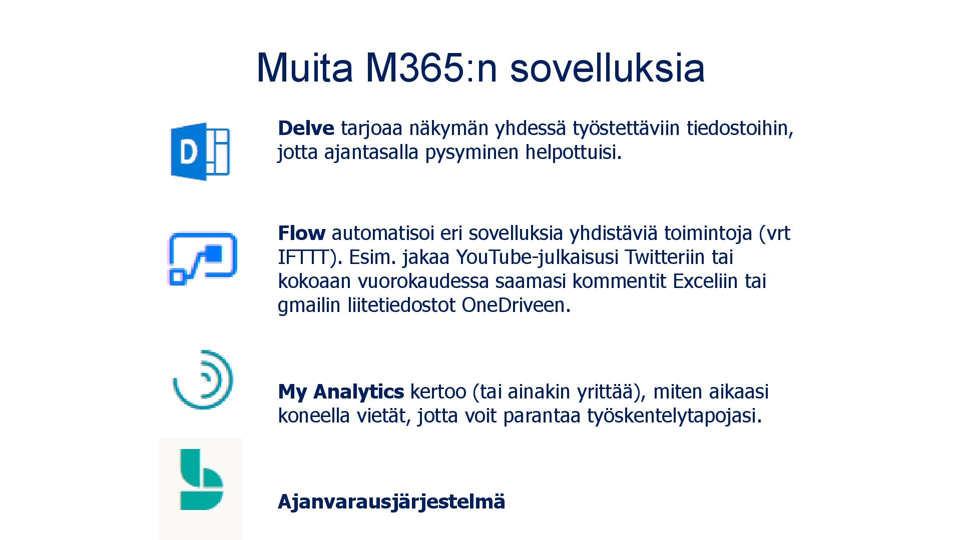 Microsoftin pilvipalvelun sovellusten esittelyä ensisijassa opettajien ja muunkin oppilaitoksen toiminnan näkökulmasta. Parhaiten pysyt ajantasalla jatkuvissa muutoksissa seuraamalla Facebook-ryhmää: https://www.facebook.com/groups/o365.opetuksessa.ja.oppimisessa