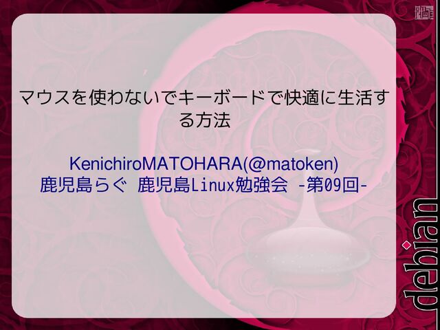 マウスを使わないでキーボードで快適に生活す る方法 KenichiroMATOHARA(@matoken) 鹿児島らぐ 鹿児島Linux勉強会 -第09回-