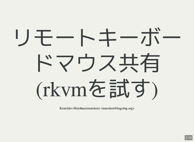 $ mkdir ~/.config/rkvm $ ./target/release/certificate-gen ~/.config/rkvm/identity.p12 \ ~/.config/rkvm/certificate.pem key -d t430s.local Generating a RSA private key .......................................+++++ .....+++++ writing new private key to 'key' ----- Enter Export Password: Verifying - Enter Export Password: $ cp example/server.toml ~/.config/rkvm/ $ vi ~/.config/rkvm/server.toml $ cat ~/.config/rkvm/server.toml listen-address = "0.0.0.0:5258" # Switch to next client by pressing the left alt key. switch-keys = ["LeftAlt"] identity-path = "identity.p12" # Leave unset if no password is set. identity-password = "123456789" 1 2 3 8 / 15