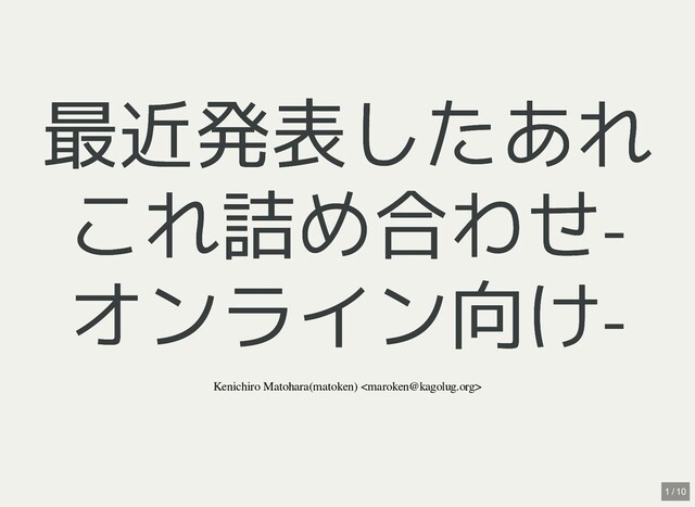 最近発表したあれ 最近発表したあれ これ詰め合わせ- これ詰め合わせ- オンライン向け- オンライン向け- Kenichiro Matohara(matoken) <
