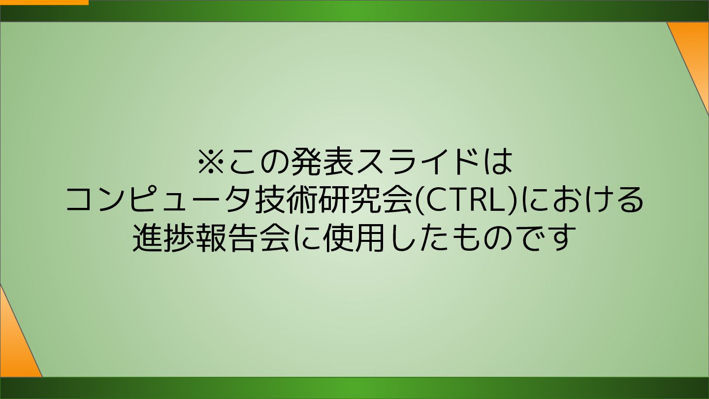 ※この発表スライドは コンピュータ技術研究会(CTRL)における 進捗報告会に使用したものです