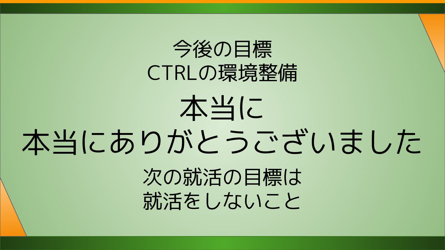 今後の目標 CTRLの環境整備 本当に 本当にありがとうございました 次の就活の目標は 就活をしないこと