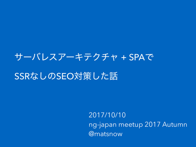 2017/10/10のng-japan meetup 2017 AutumnのLT枠で発表した時のスライド。(若干手を加えています) リリースしたサービスで、サーバサイドレンダリングせずにSEOとOGPの対策をした時のノウハウの共有。