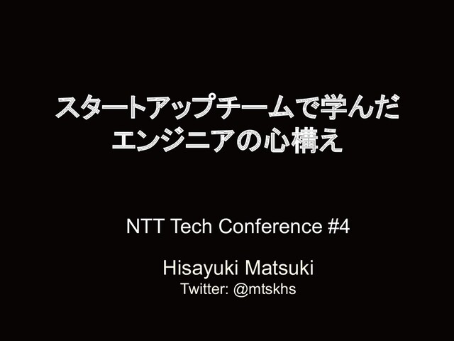 スタートアップチームで学んだ エンジニアの心構え NTT Tech Conference #4 Hisayuki Matsuki Twitter: @mtskhs