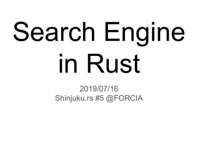 Search Engine in Rust 2019/07/16 Shinjuku.rs #5 @FORCIA