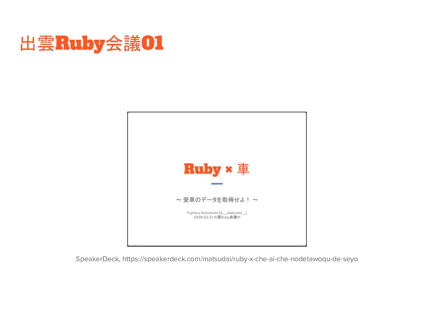 Izumo Developers' Guild 第13回 meetup~出雲Ruby会議感想大会~ https://izumo-developers-guild.connpass.com/event/381873/