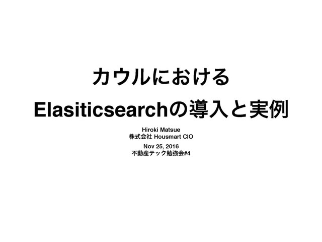 Χϧʹ͓͚Δ Elasiticsearchͷಋೖͱ࣮ྫ Hiroki Matsue גࣜձࣾ Housmart CIO Nov 25, 2016