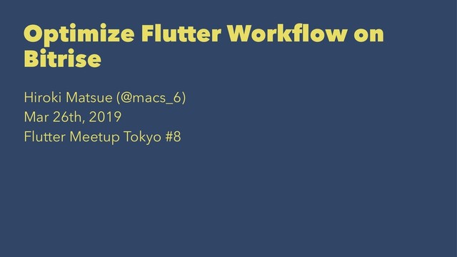 Optimize Flutter Workflow on Bitrise Hiroki Matsue (@macs_6) Mar 26th,