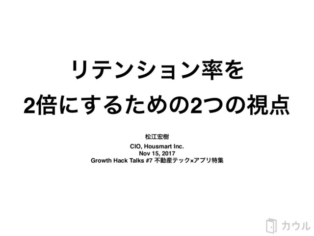 ϦςϯγϣϯΛ 2ഒʹ͢ΔͨΊͷ2ͭͷࢹ দߐथ CIO, Housmart Inc. Nov 15, 2017 Growth