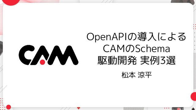 先日 v3.1 がリリースされた OpenAPI ですが、ドキュメント化やモックサーバーの立ち上げなど、API 開発における様々なシーンでのデファクトスタンダードとなりつつあります。この登壇では、CAM における OpenAPI の活用について、レガシー環境への導入や応用の実例を3つ解説していきます。