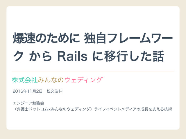 みんなのウェディングで使われている 独自フレームワーク MobaSiF から、Rubyn on Rails に移行した話です。