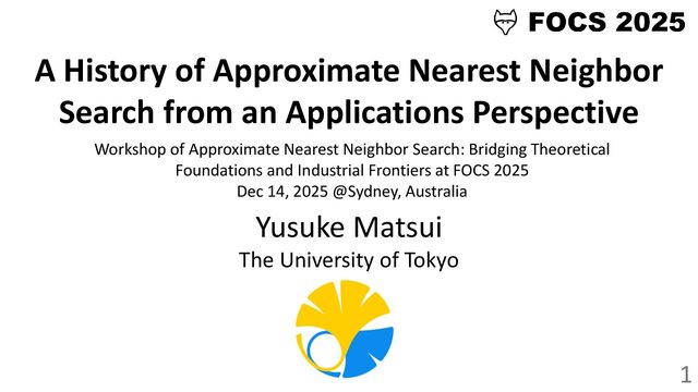 Applications Perspective Yusuke Matsui The University of Tokyo Workshop of Approximate Nearest Neighbor Search: Bridging Theoretical Foundations and Industrial Frontiers at FOCS 2025 Dec 14, 2025 @Sydney, Australia