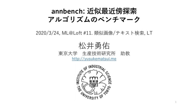 https://github.com/matsui528/annbench ➢ 是非使ってみてください! ➢ PR歓迎です! ➢ 探索の理論/応用の研究に興味がある企業の方、 学生の方、お声がけください http://yusukematsui.me